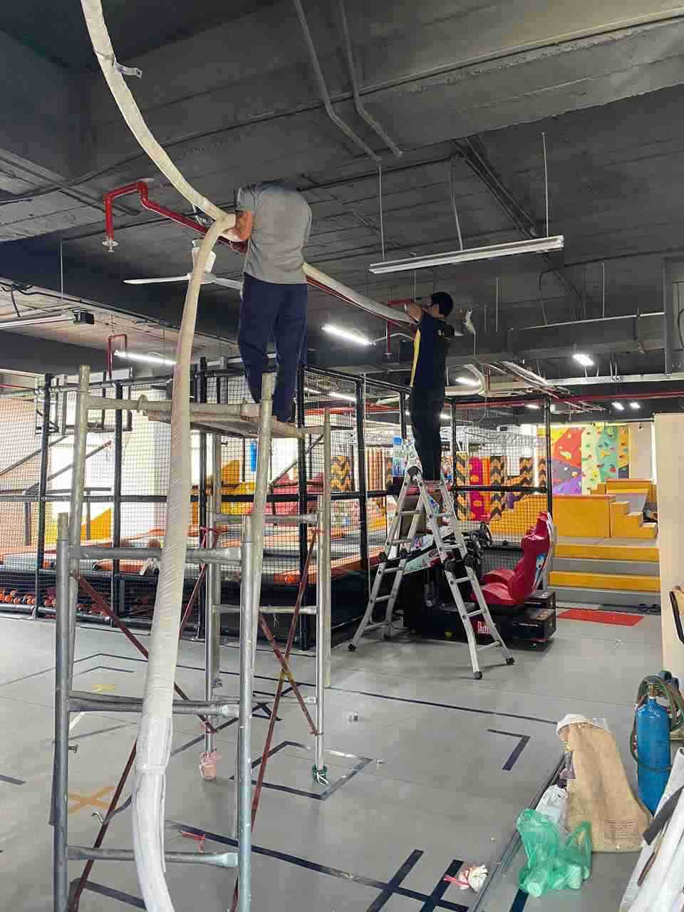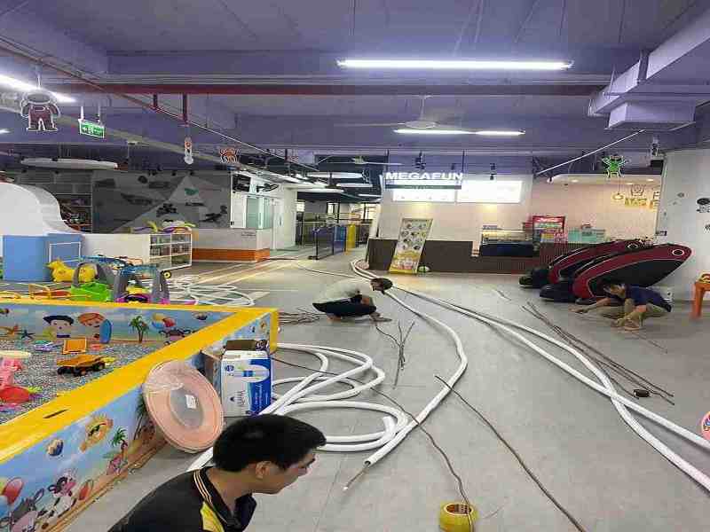 Chúng tôi vừa hoàn thành dự án lắp đặt điều hòa công suất lớn cho khu vui chơi trong nhà. Với đặc thù tập trung đông người, hệ thống điều hòa được thiết kế đảm bảo làm lạnh nhanh, phân bổ gió đồng đều, giữ không gian luôn thoáng mát, thoải mái.
